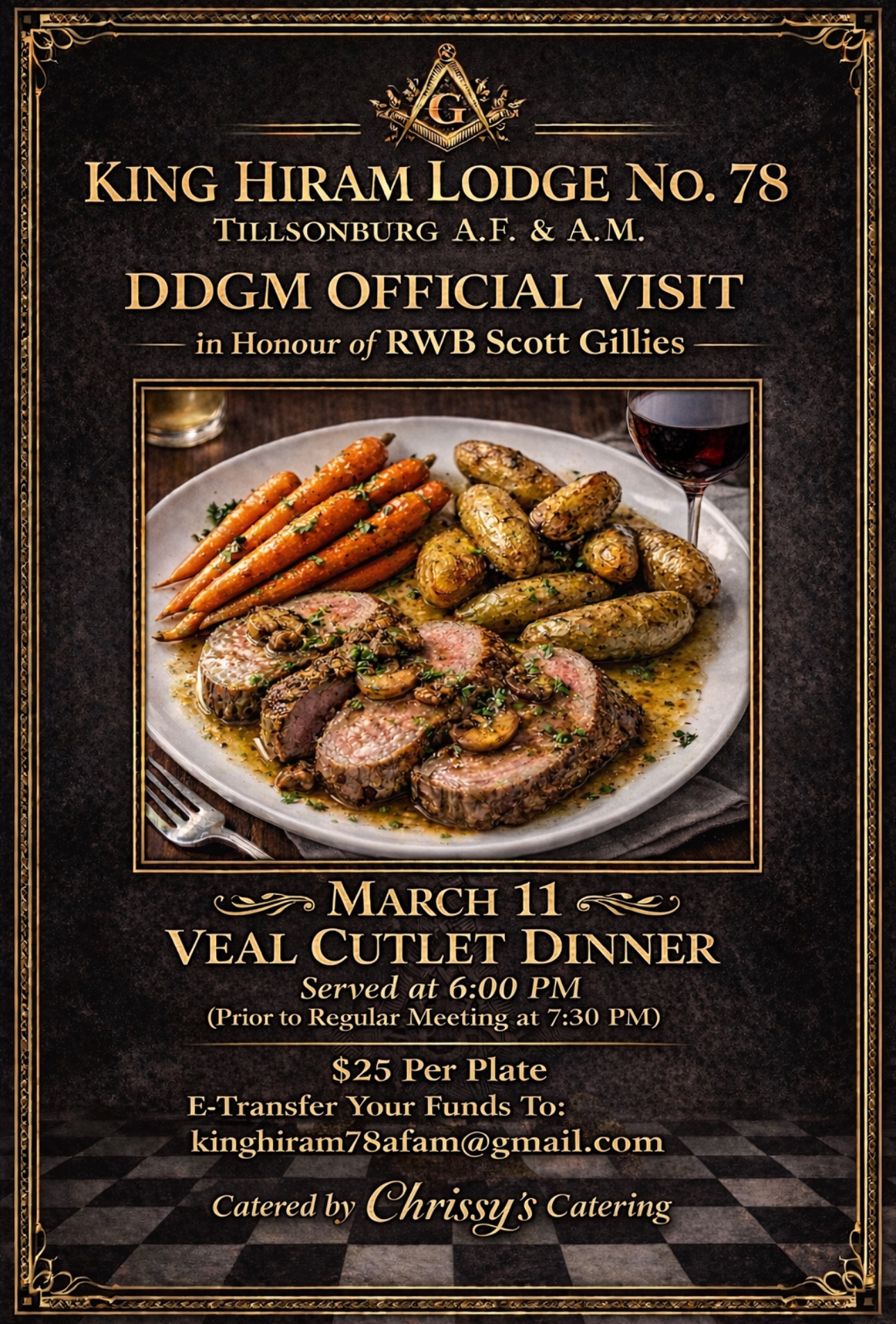 King Hiram No 78 – OFFICIAL VISIT!! & Veal Cutlet Dinner!!!! & M.M. Degree!