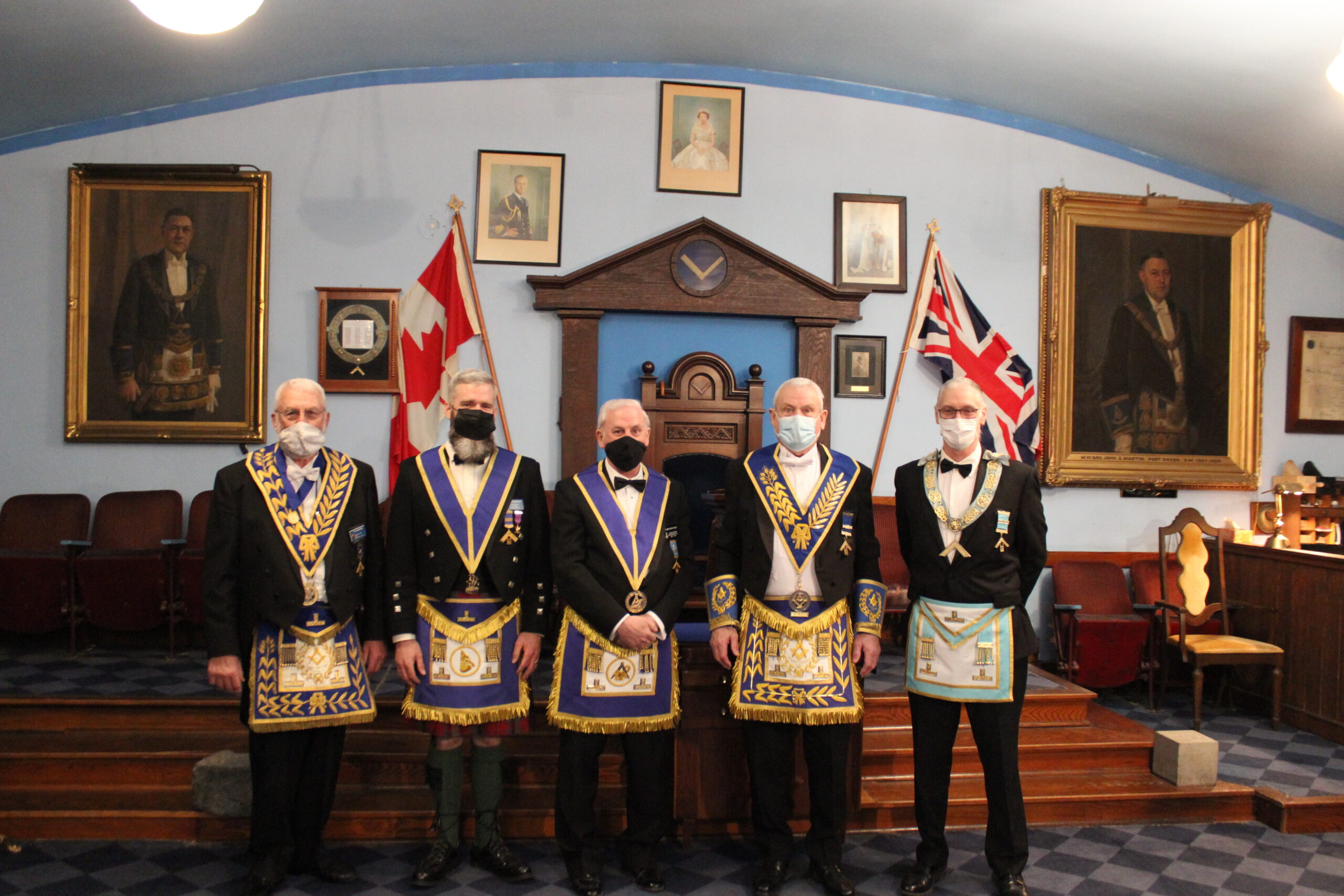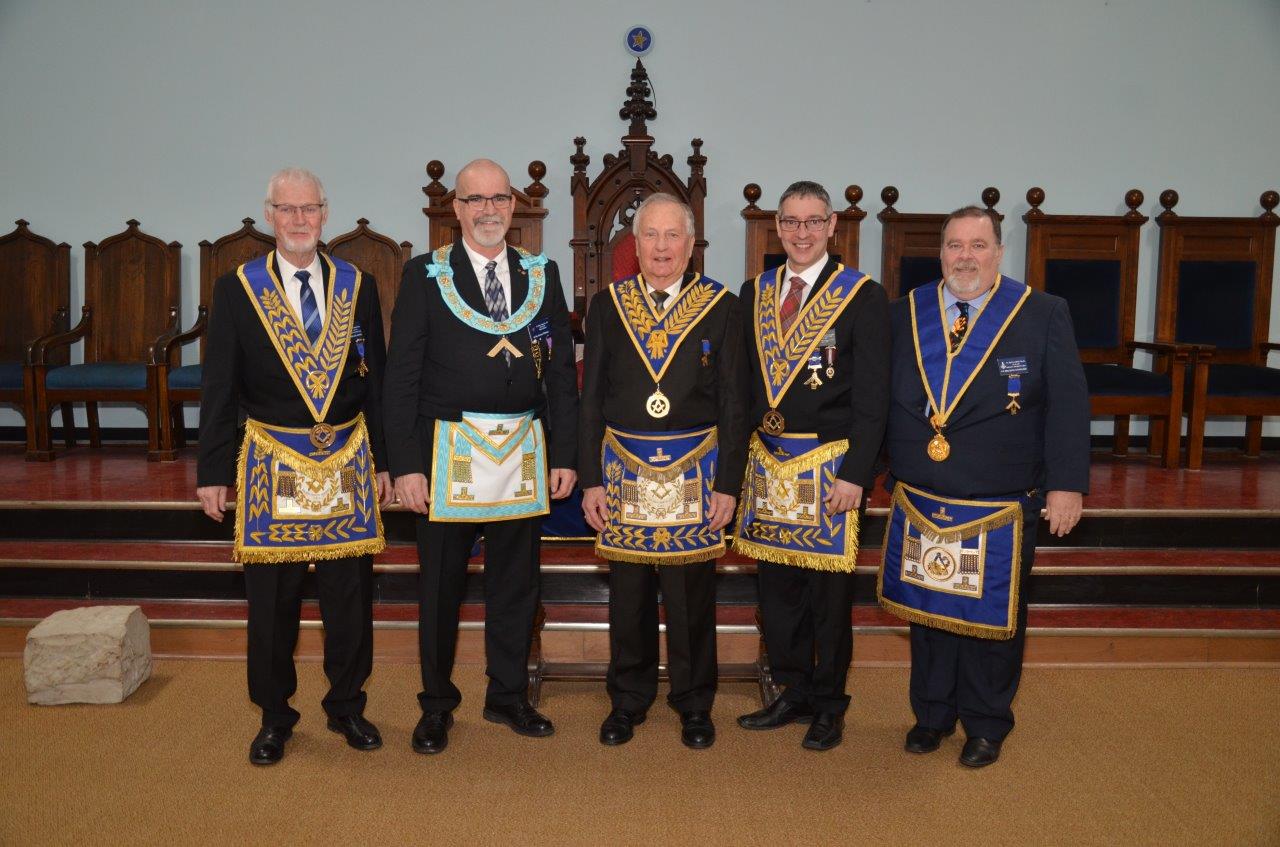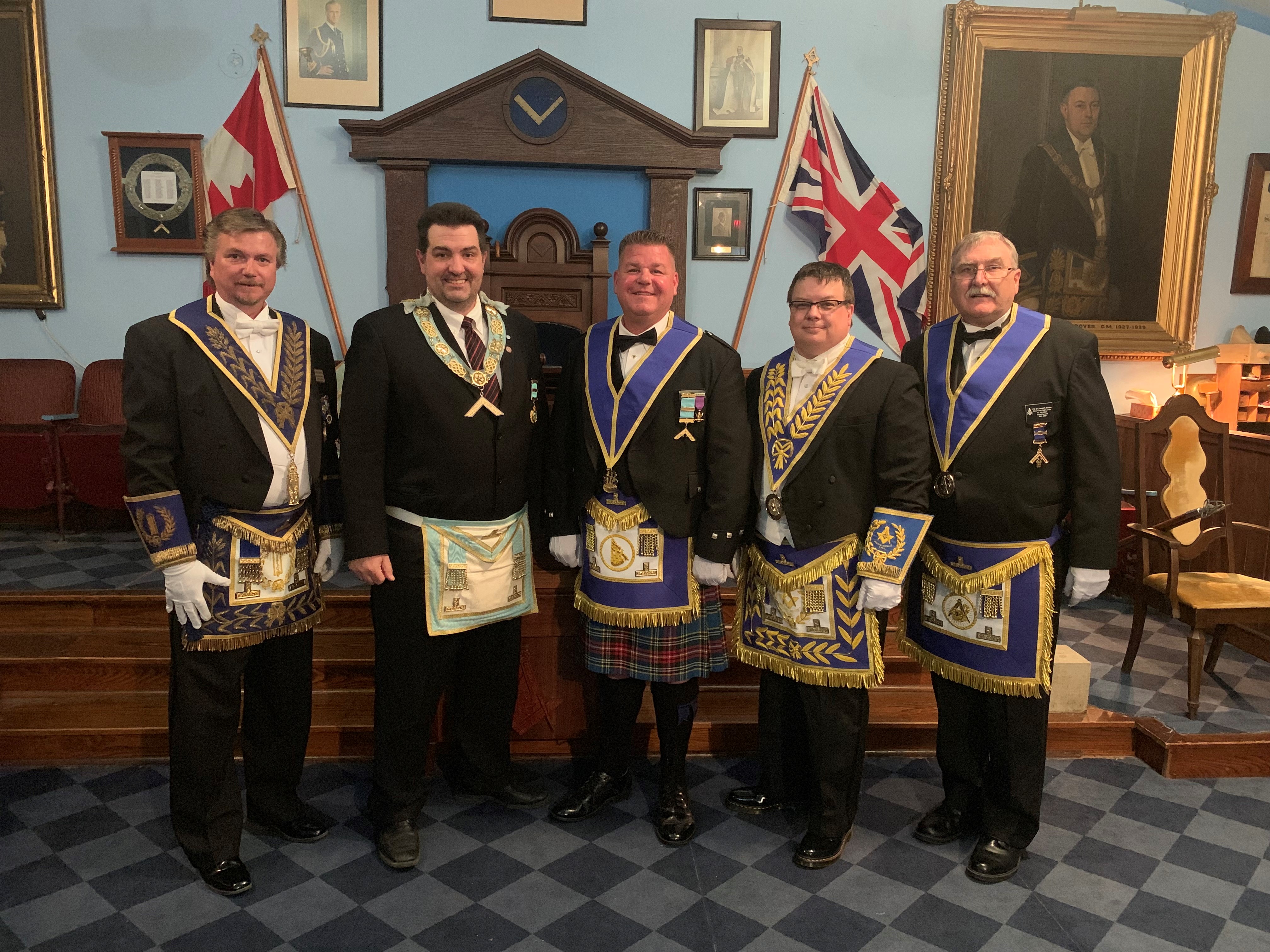 W.Bro. John Creamer and his officers flanked by M.W. David Cameron and R.W. David Palmer - January 15, 2024
