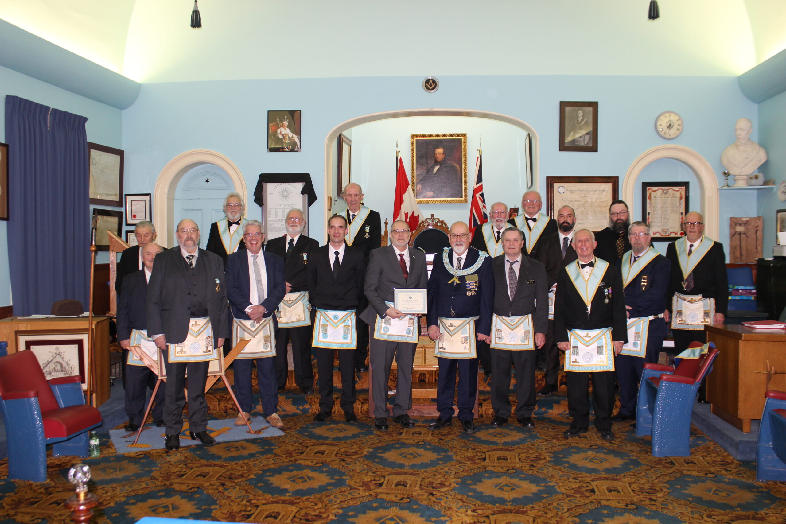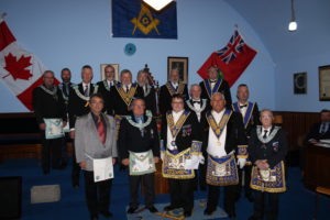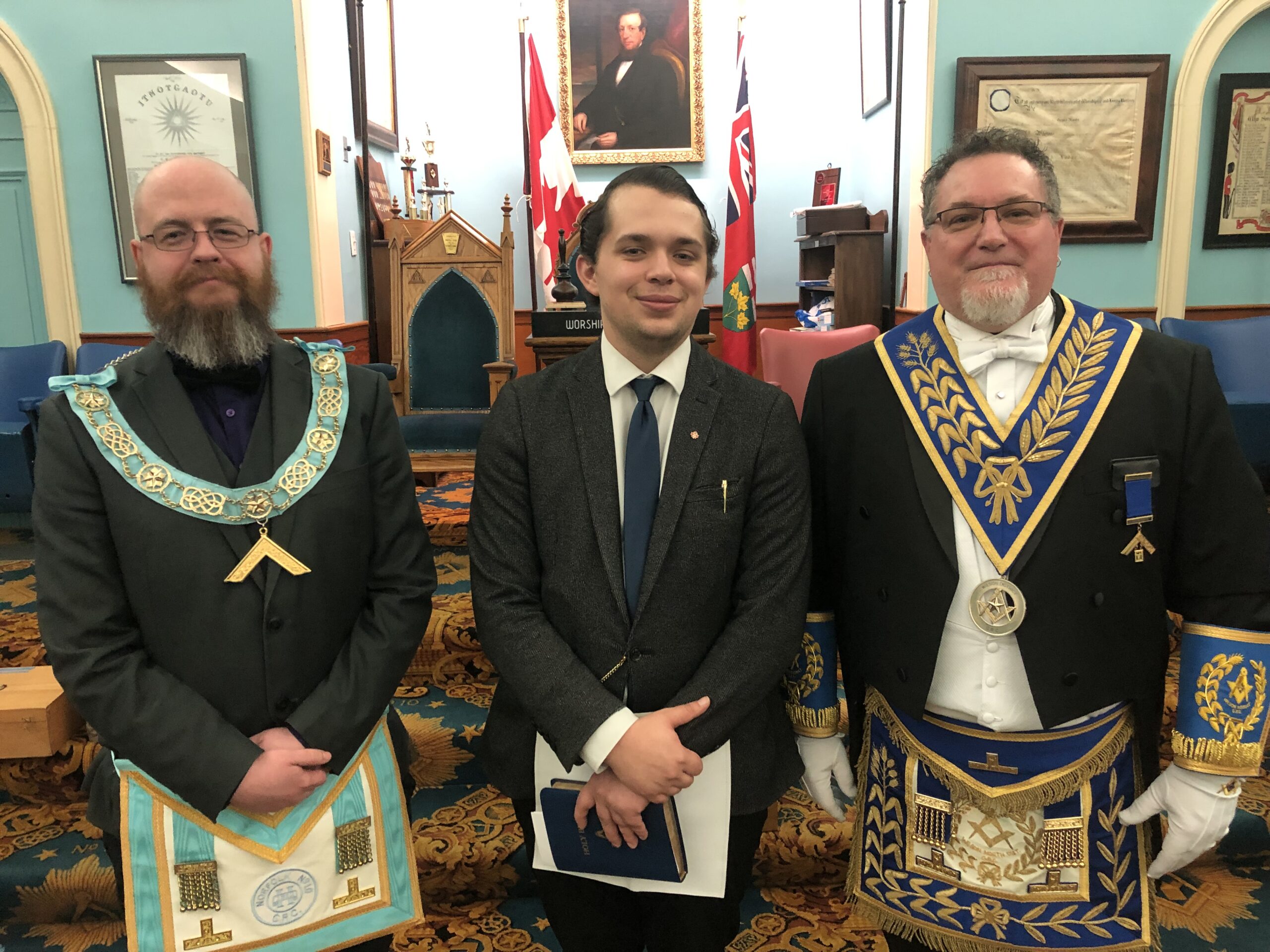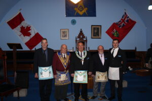 l-r: W.Bro. Scott Paton - Michael Hamilton M.M. - R.W. David Palmer D.D.G.M. November 5, 2024
