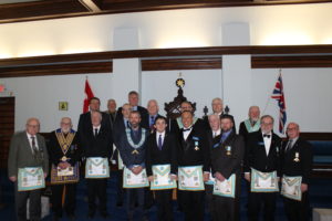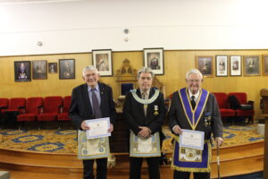 L-R W. Bro Roy Osmond - R.W. Bro. Lewis Pilgrim D.D.G.M - R.W Bro. Tom Siemiernik B.G.P