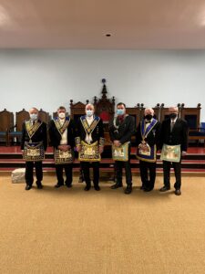 l-r R.W. Bro. Joe Lewis-V.W.-Calvin Reid-V.W. Bro. Arnold Johnson-W.Bro Scott Jenereaux