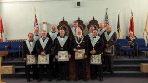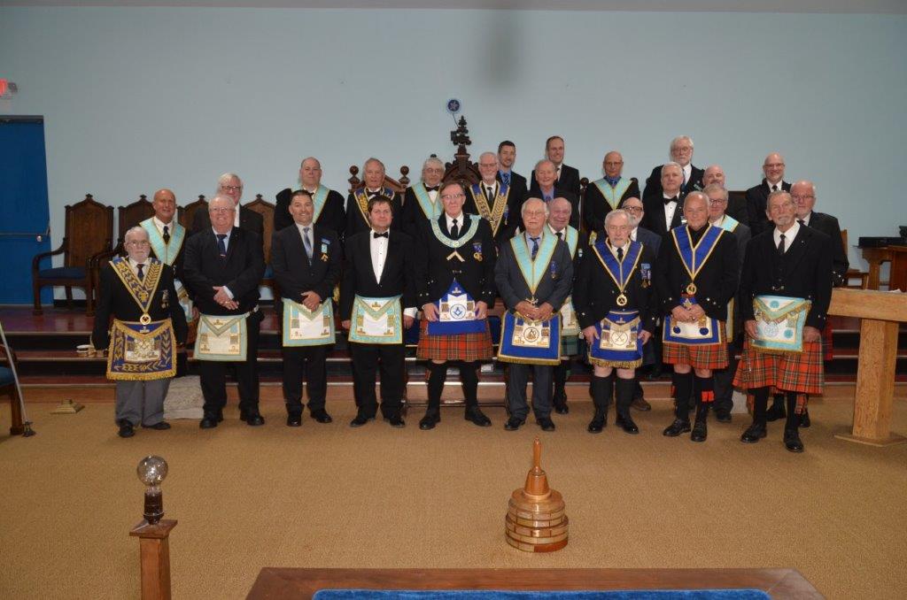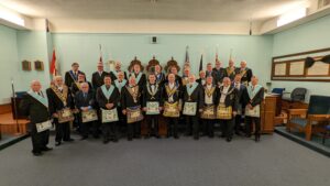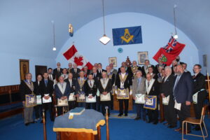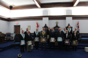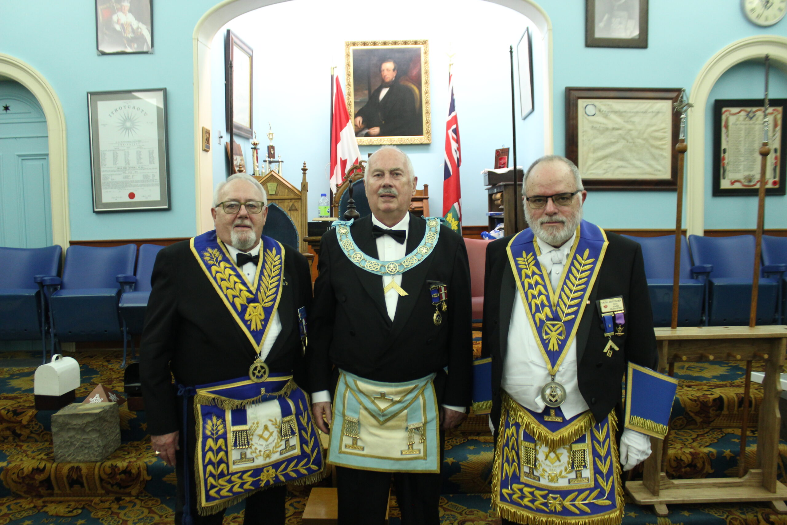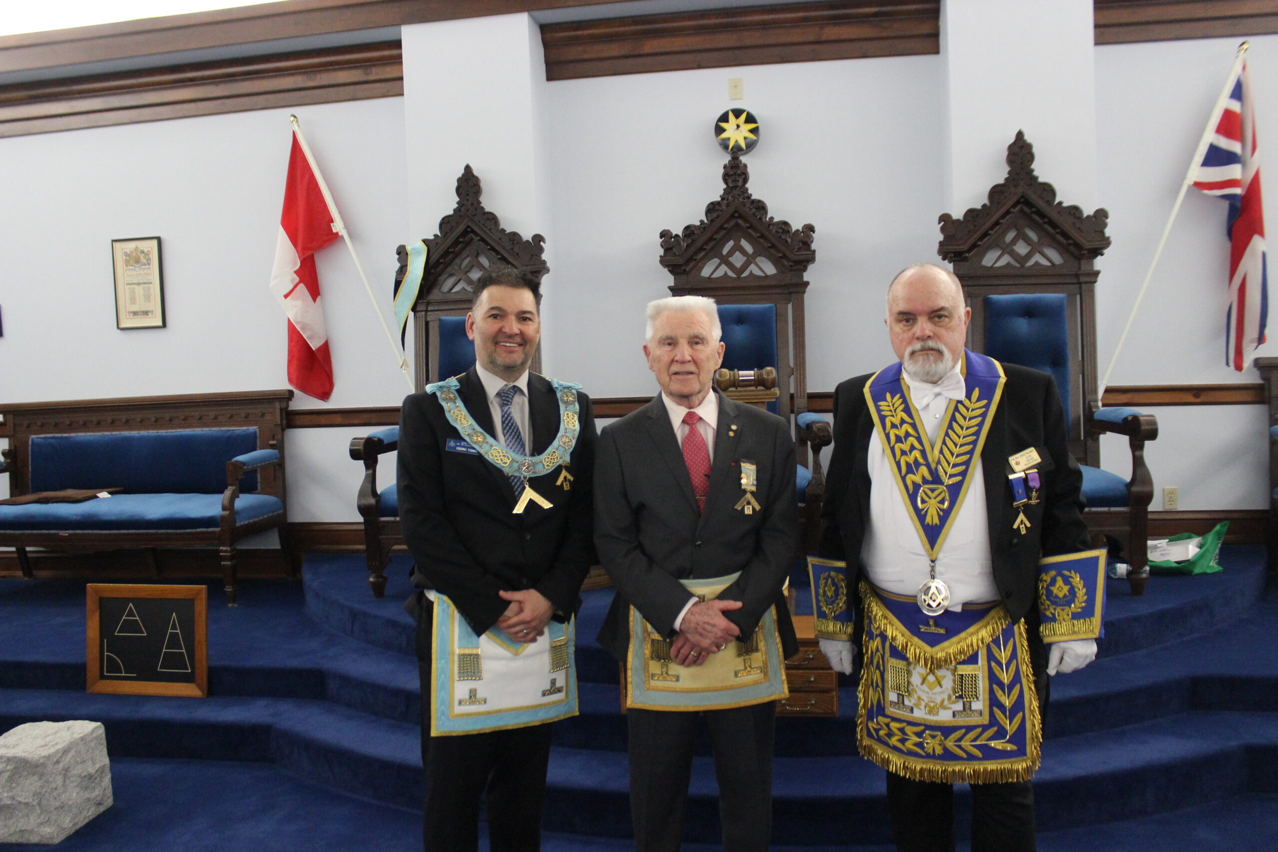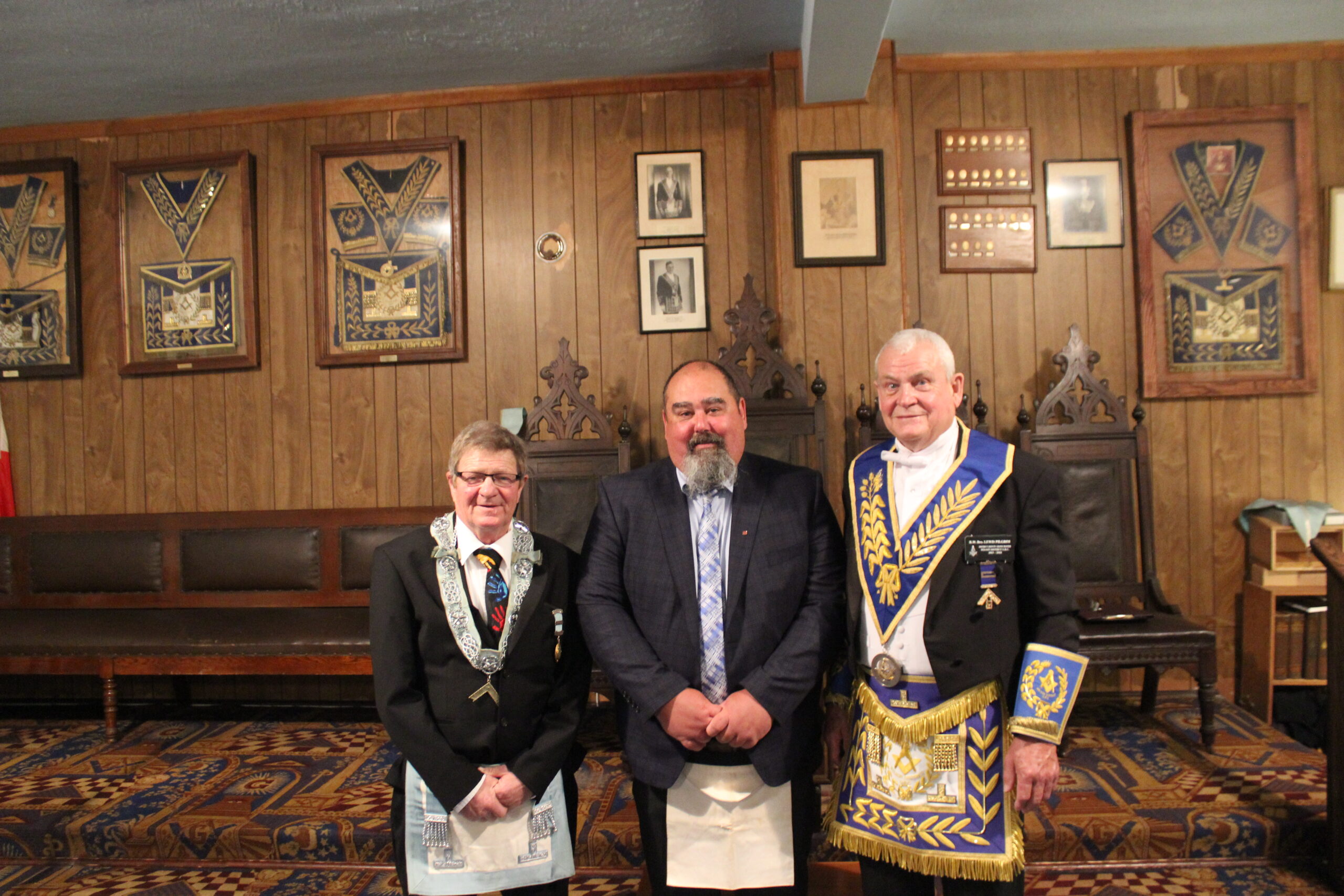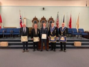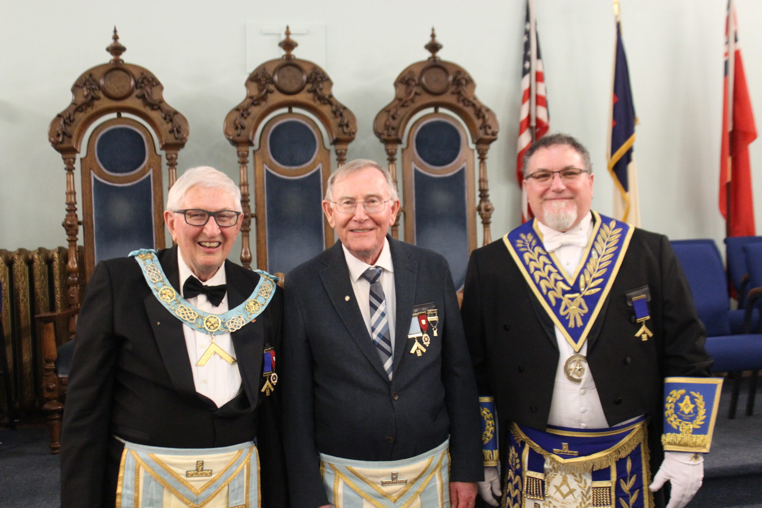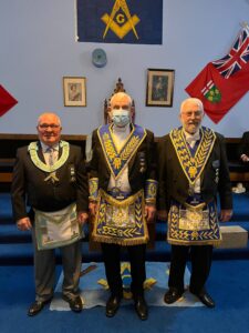 September 20, 2024 l-r: W.Bro. Scott Mitchell- Bro. Ken McPhee M.M. - R.W.Bro David Palmer D.D.G.M. -R.W. Bro. William Sequi