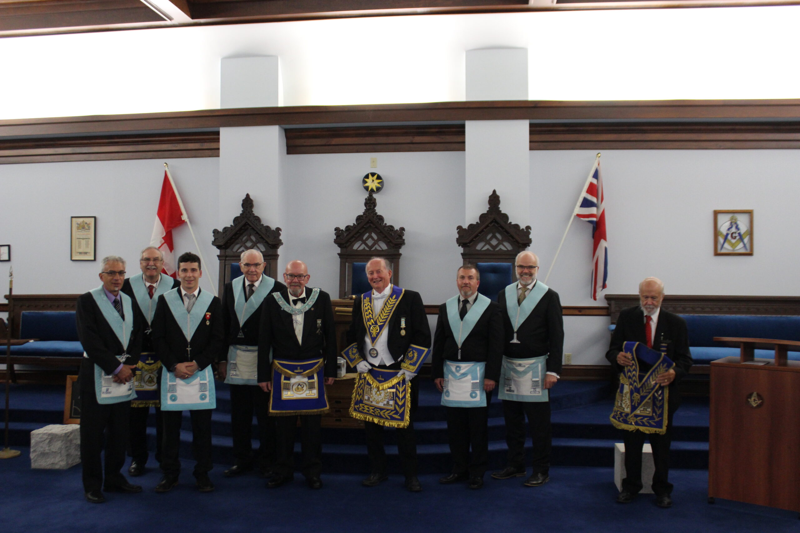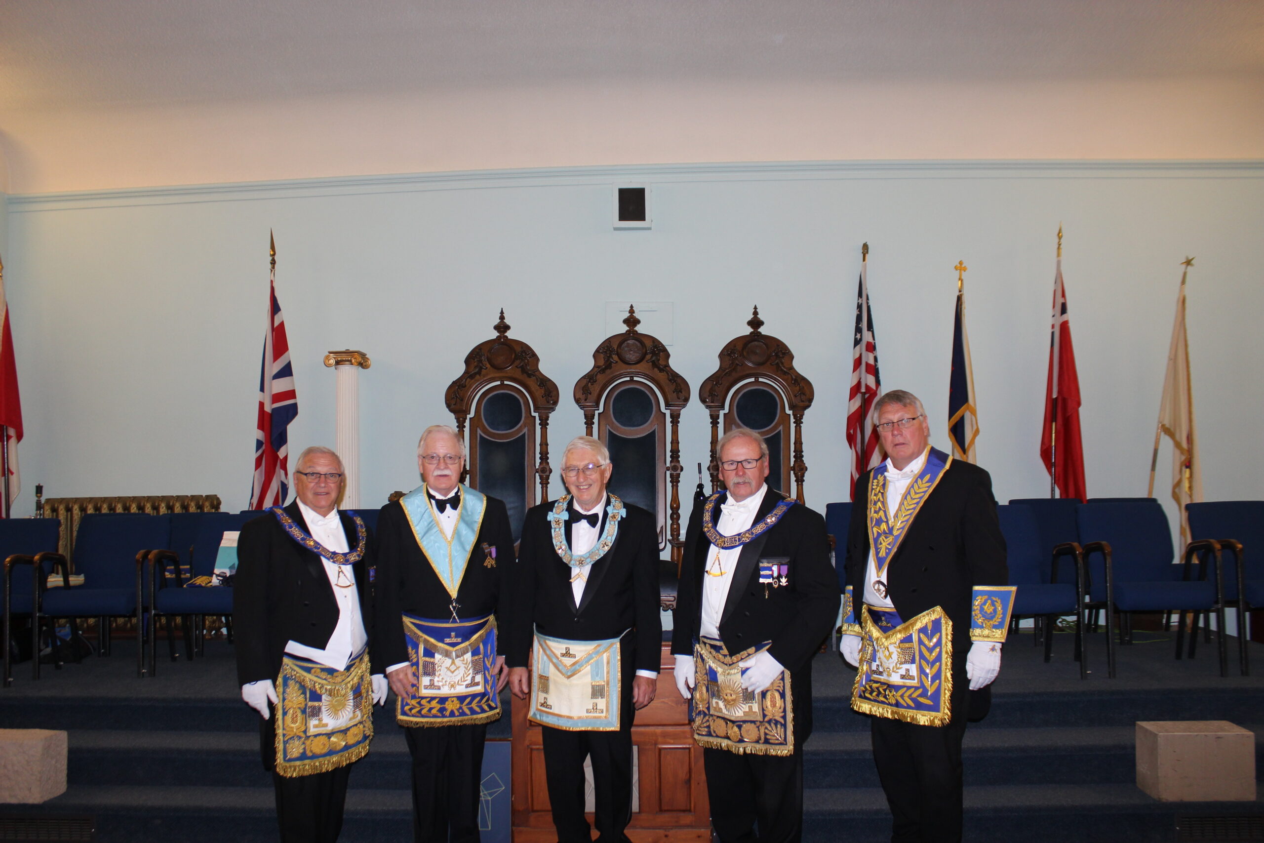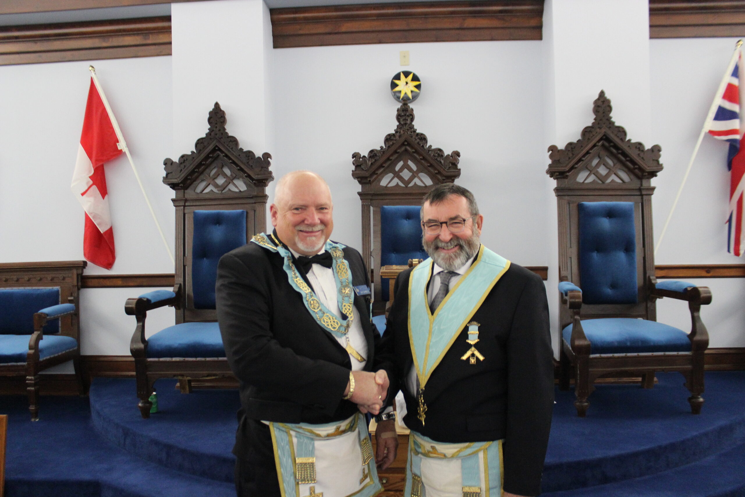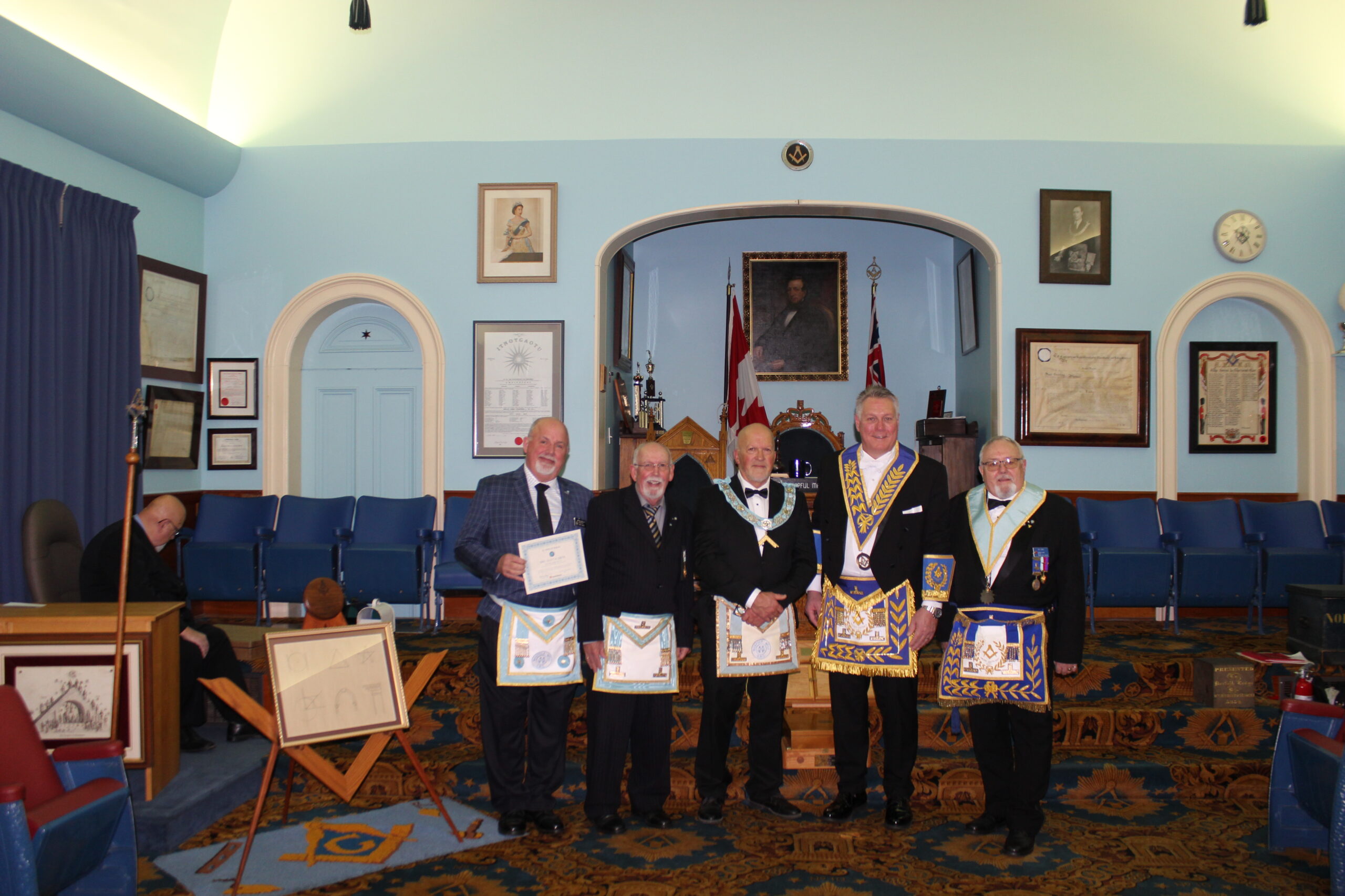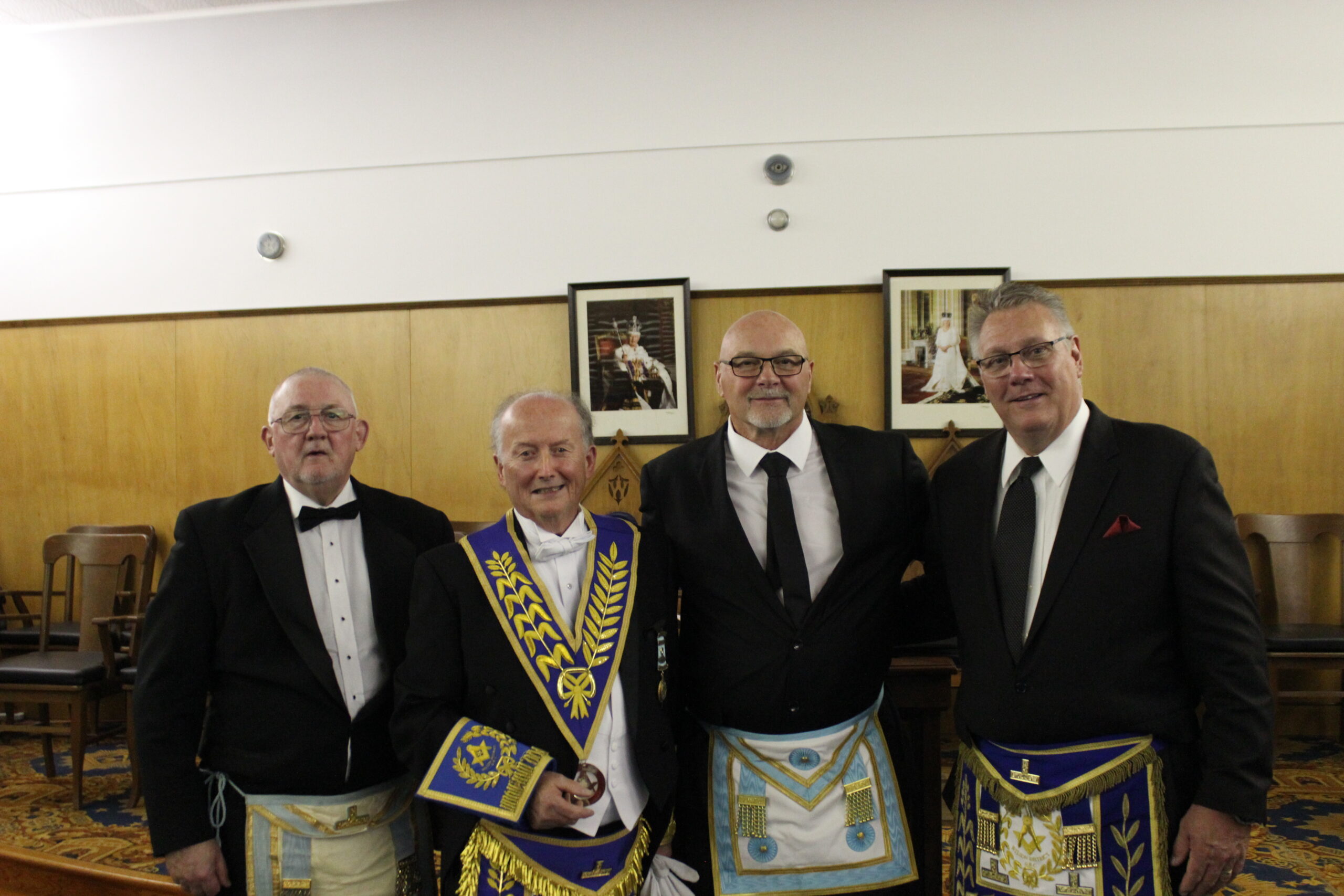 September 20, 2024 l-r: W.Bro. Scott Mitchell- Bro. Ken McPhee M.M. - R.W.Bro David Palmer D.D.G.M. -R.W. Bro. William Sequi