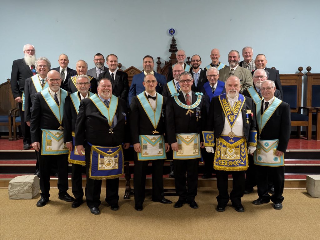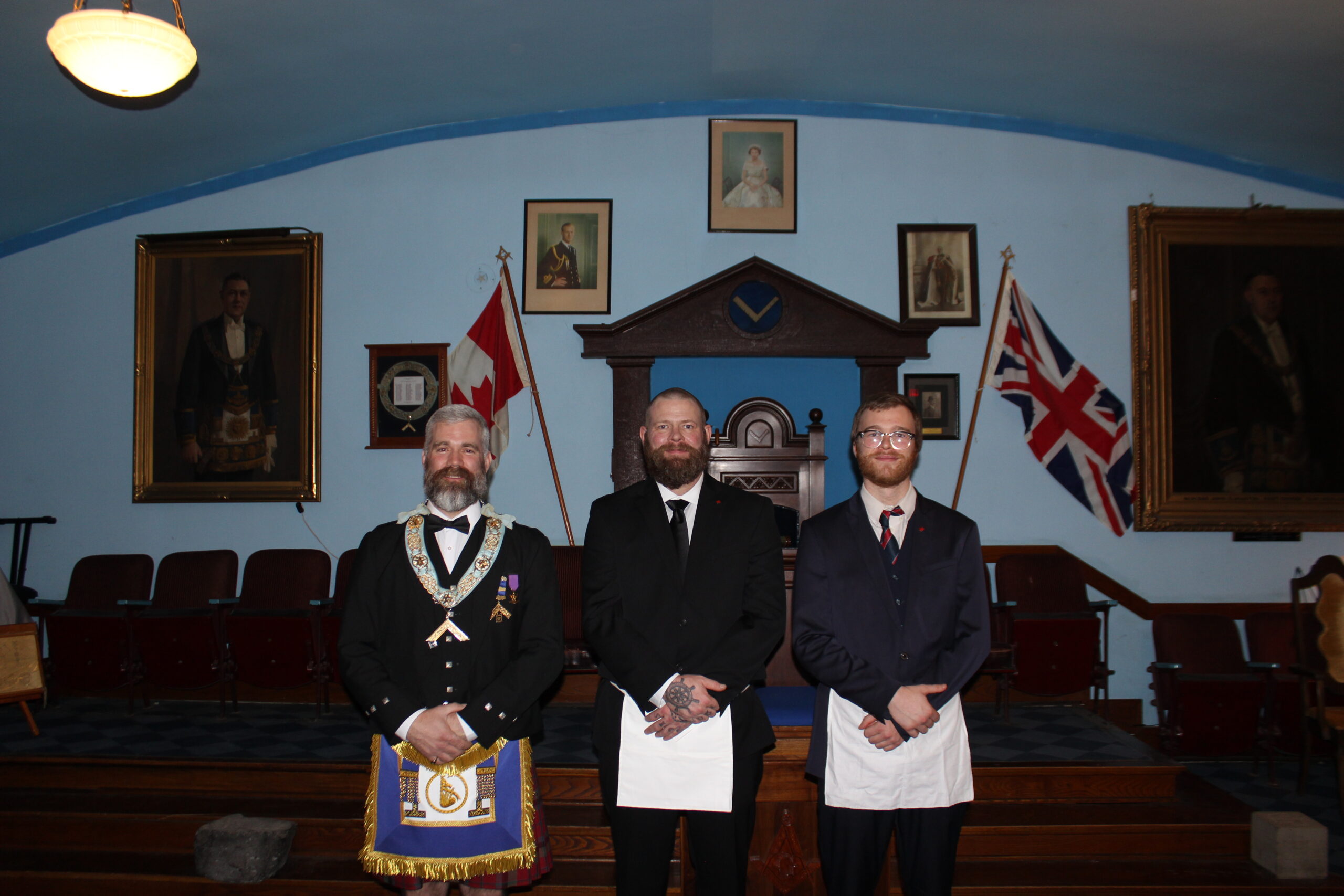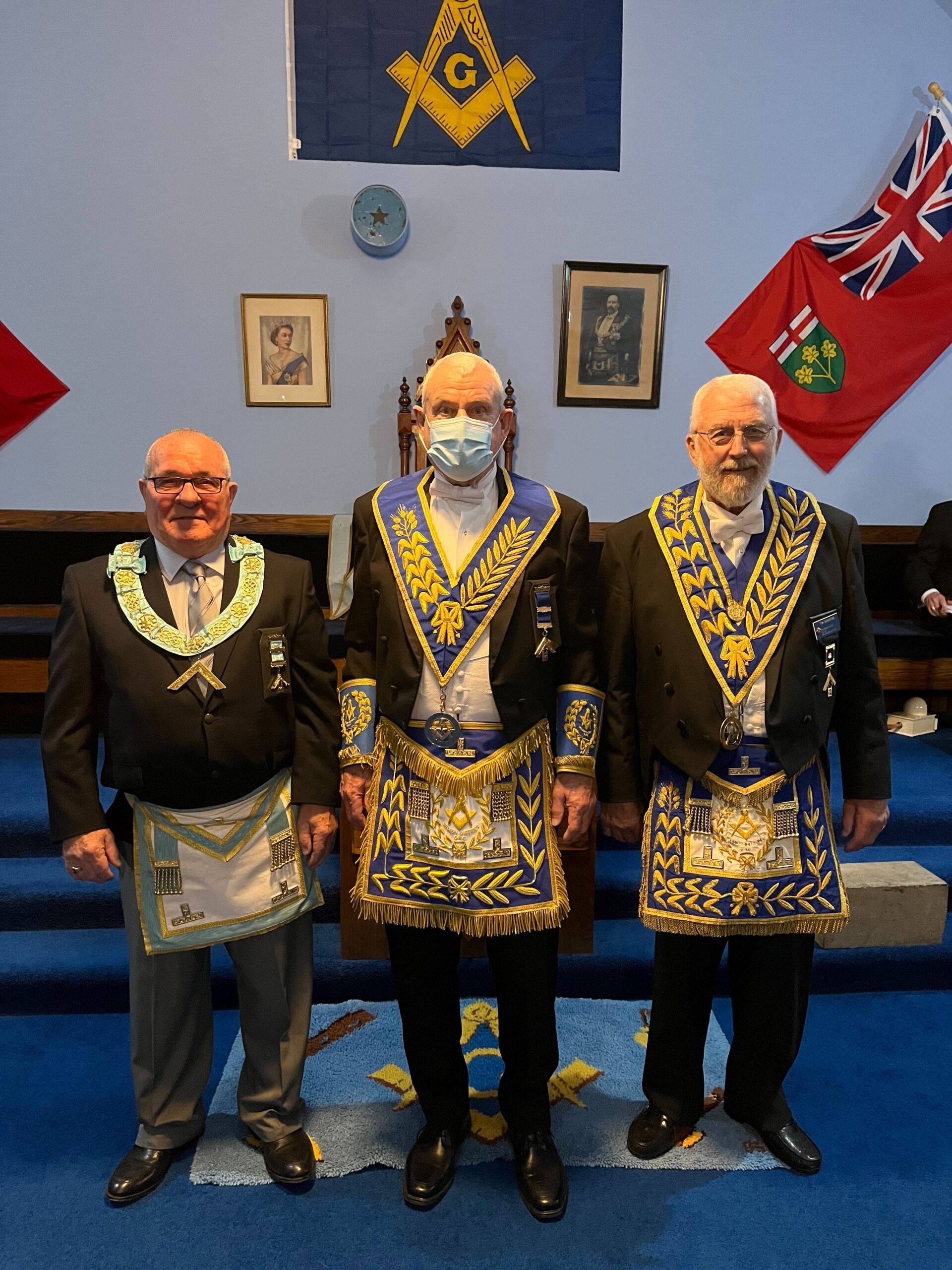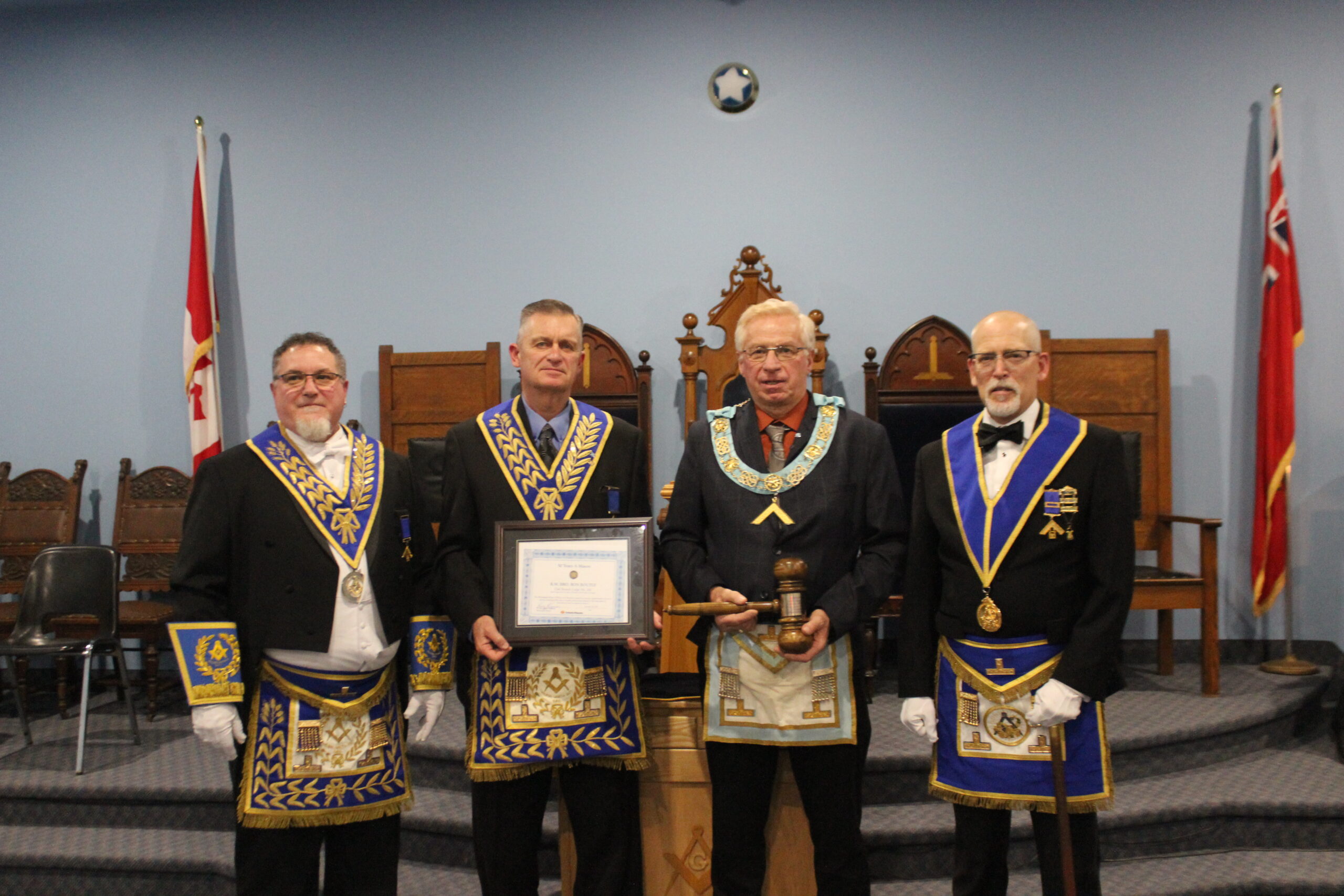 l-r: R.W. Bro. Joe Lewis Master - Bro. Frank MacMaster M.M. -R.W. Bro. Scott Gillies D.D.G.M. - September 23, 2025