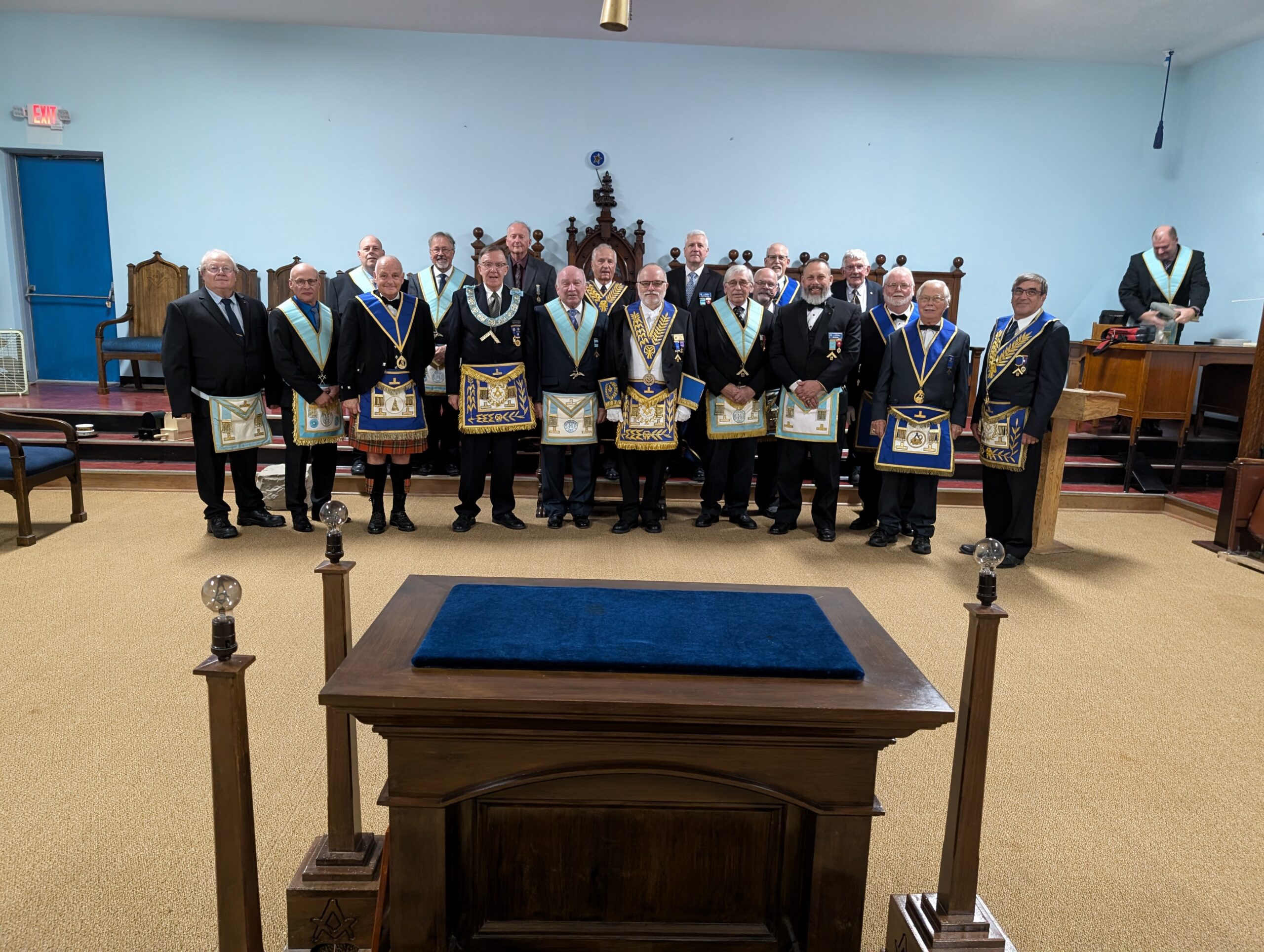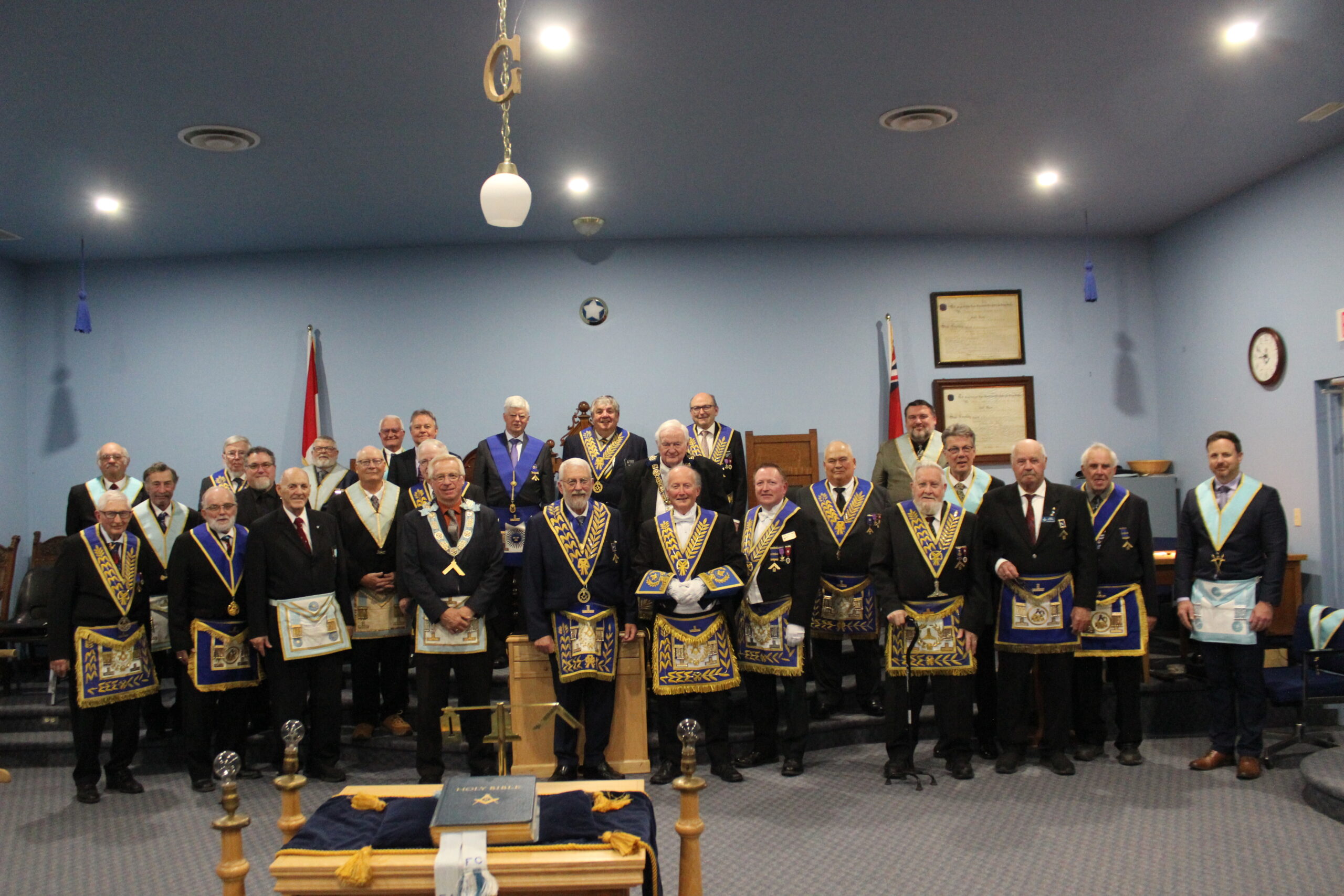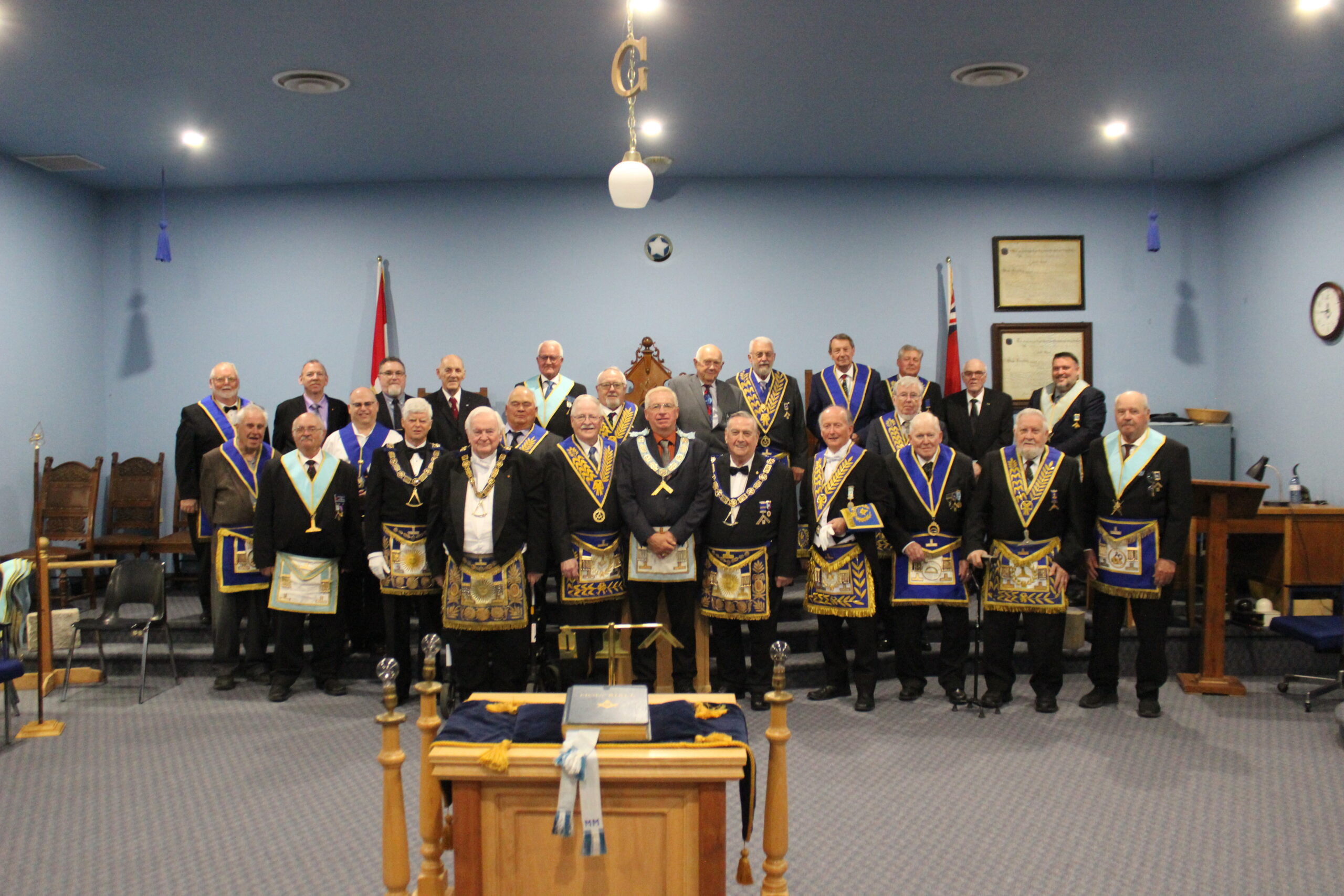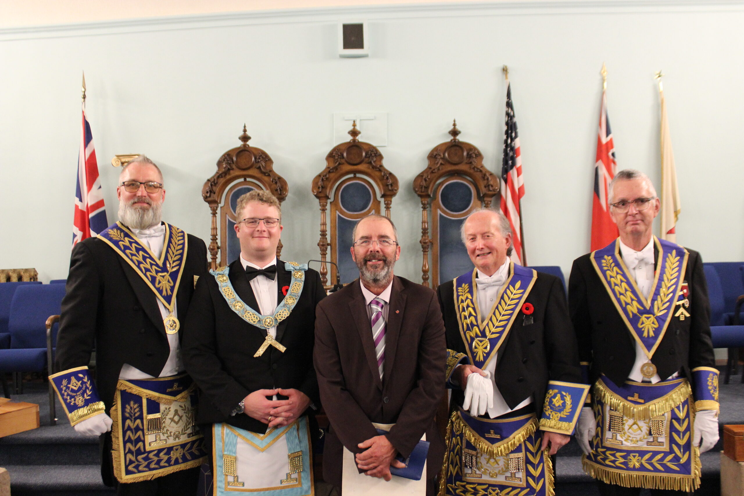 l-r: R.W. Bro. Joe Lewis Master - Bro. Frank MacMaster M.M. -R.W. Bro. Scott Gillies D.D.G.M. - September 23, 2025