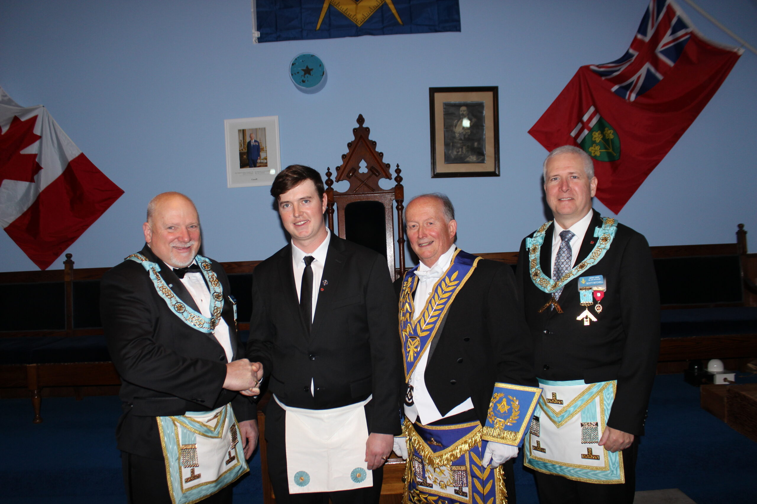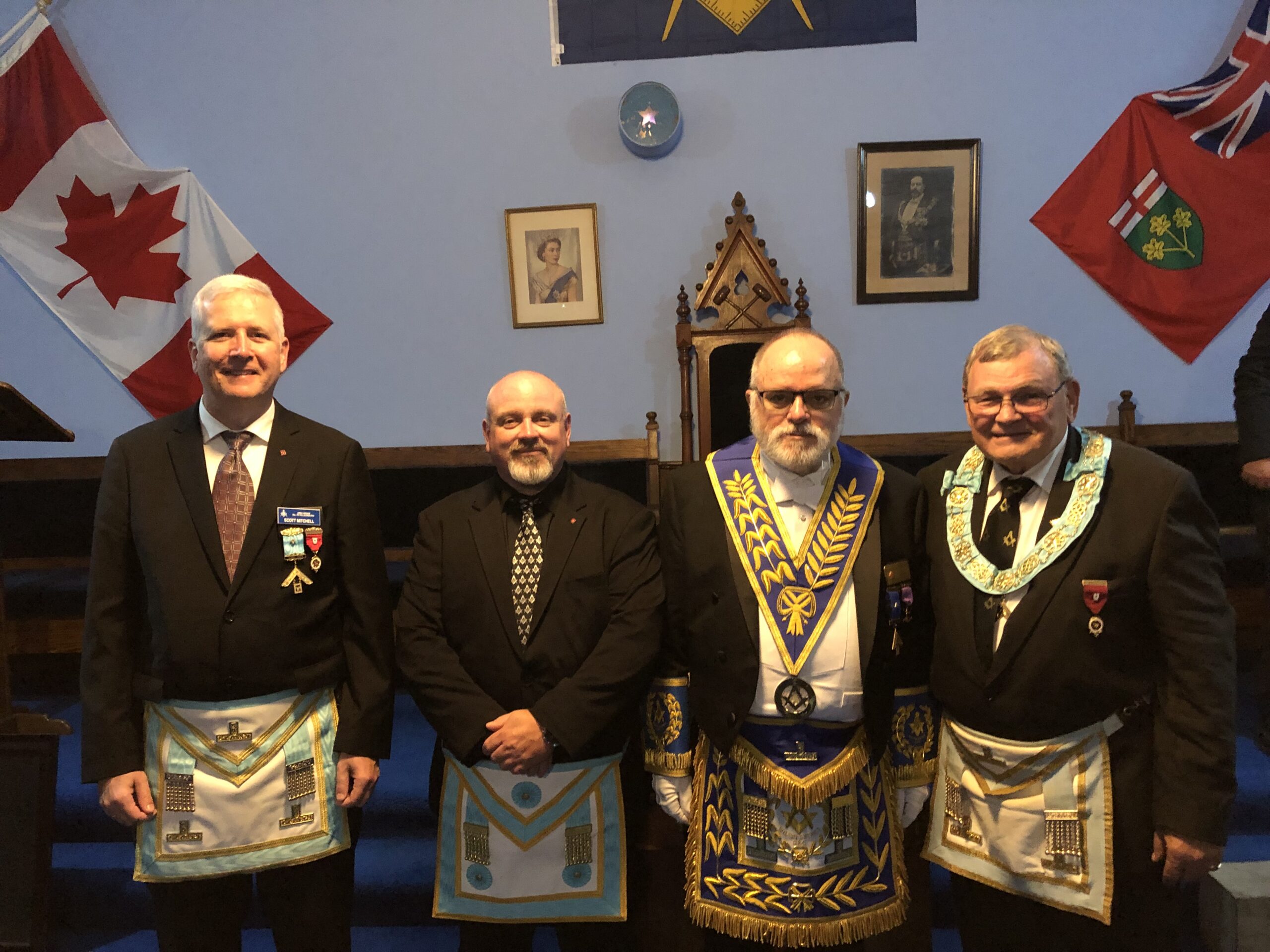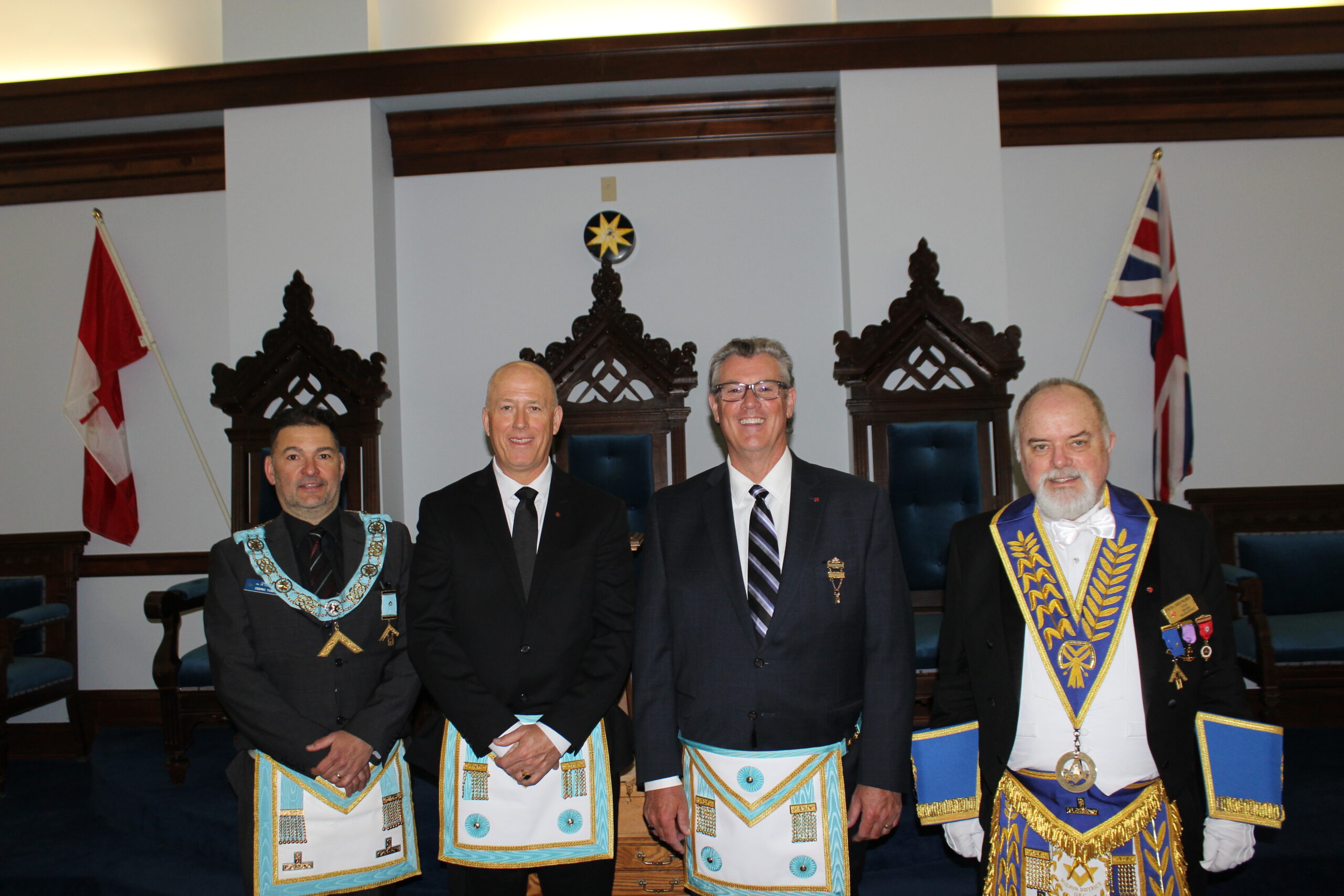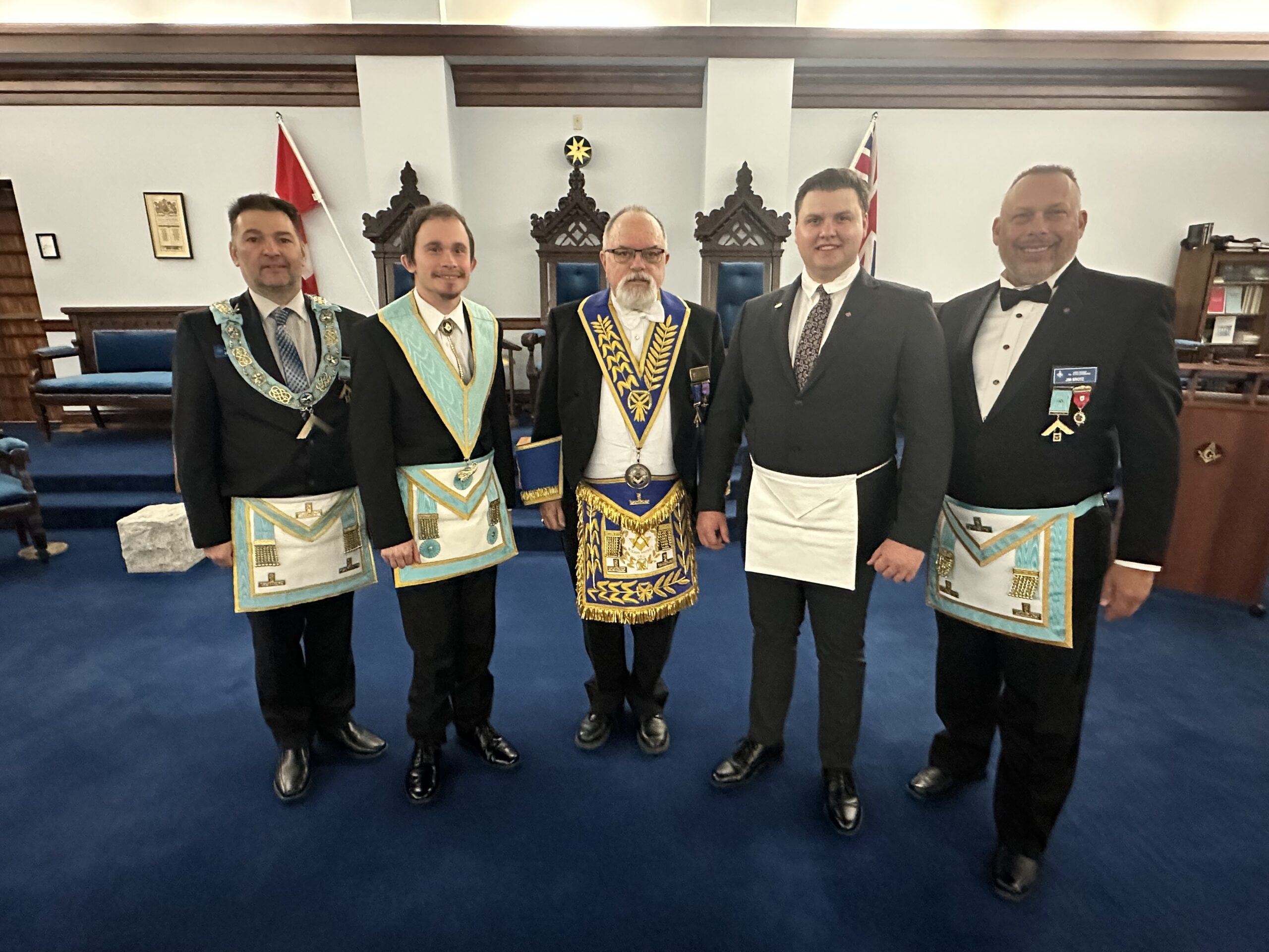 O.V. & E.A. DEGREE -NOV 10, 2025 L-R: R.W. Bro. Ian Sprague (London West)-W.Bro Eric Manuel- Bro. Paul Beraskin-R.W. Bro. Scott Gillies- R.W. Bro Dean Bauer (Brant District)
