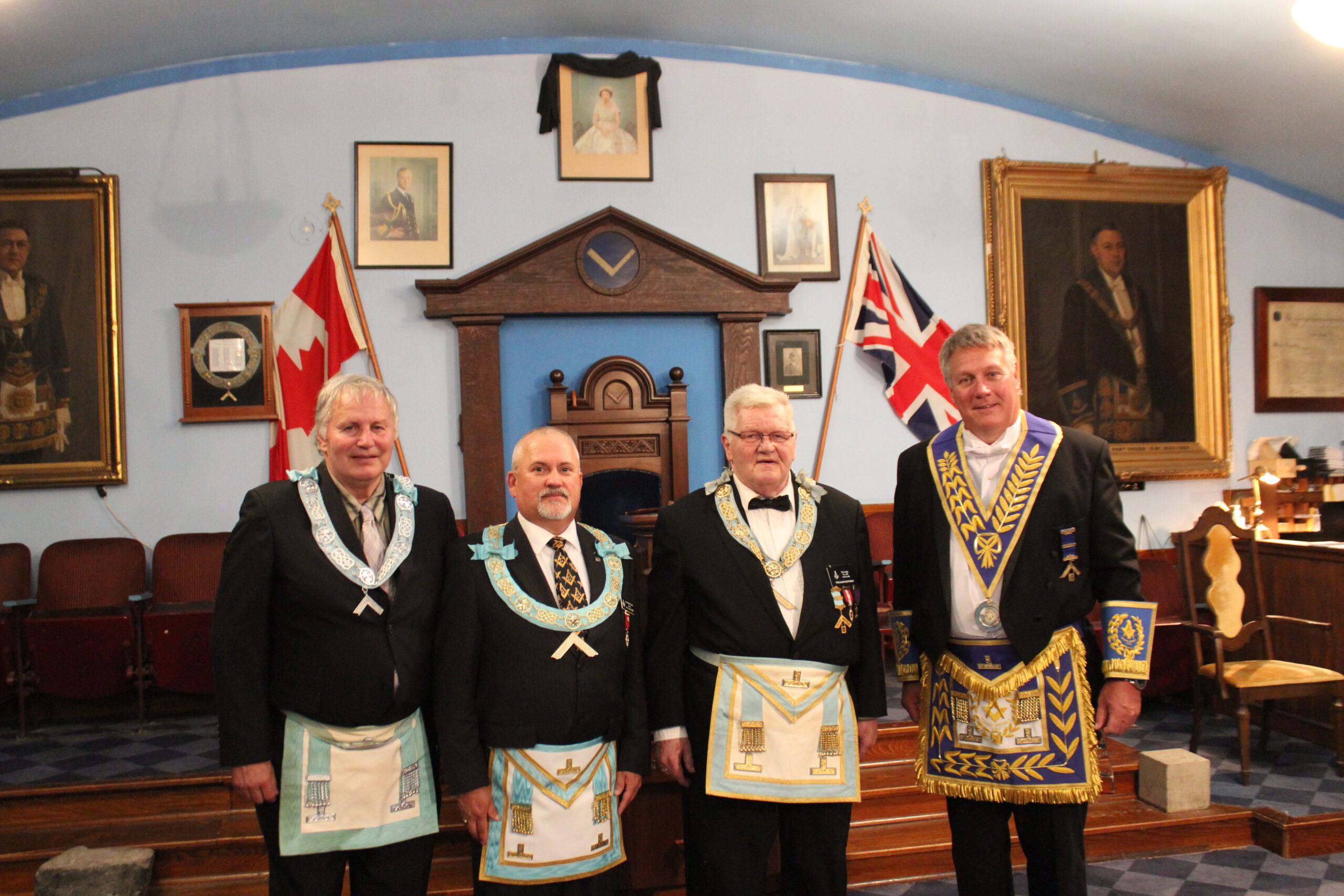 l-r: R.W. Scott Gillies D.D.G.M Wilson District - W. Bro. Dan Shaw - M.W. Allan Petrisor