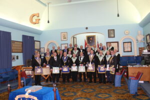 Fellowcraft Degree Bro. Steve Mior and new affiliate Bro. Ryan McLean (back row -second from right) January 13, 2025
